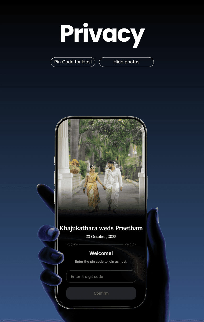 We've got you covered. With our privacy features you can hide folders or only let guests have access to their own photos.